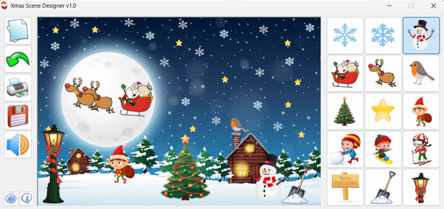 Xmas Scene Designer is a simple program that lets you design and decorate your own Xmas scene! It is great for individual children, classrooms, childcare settings or just a festive bit of fun for the family.